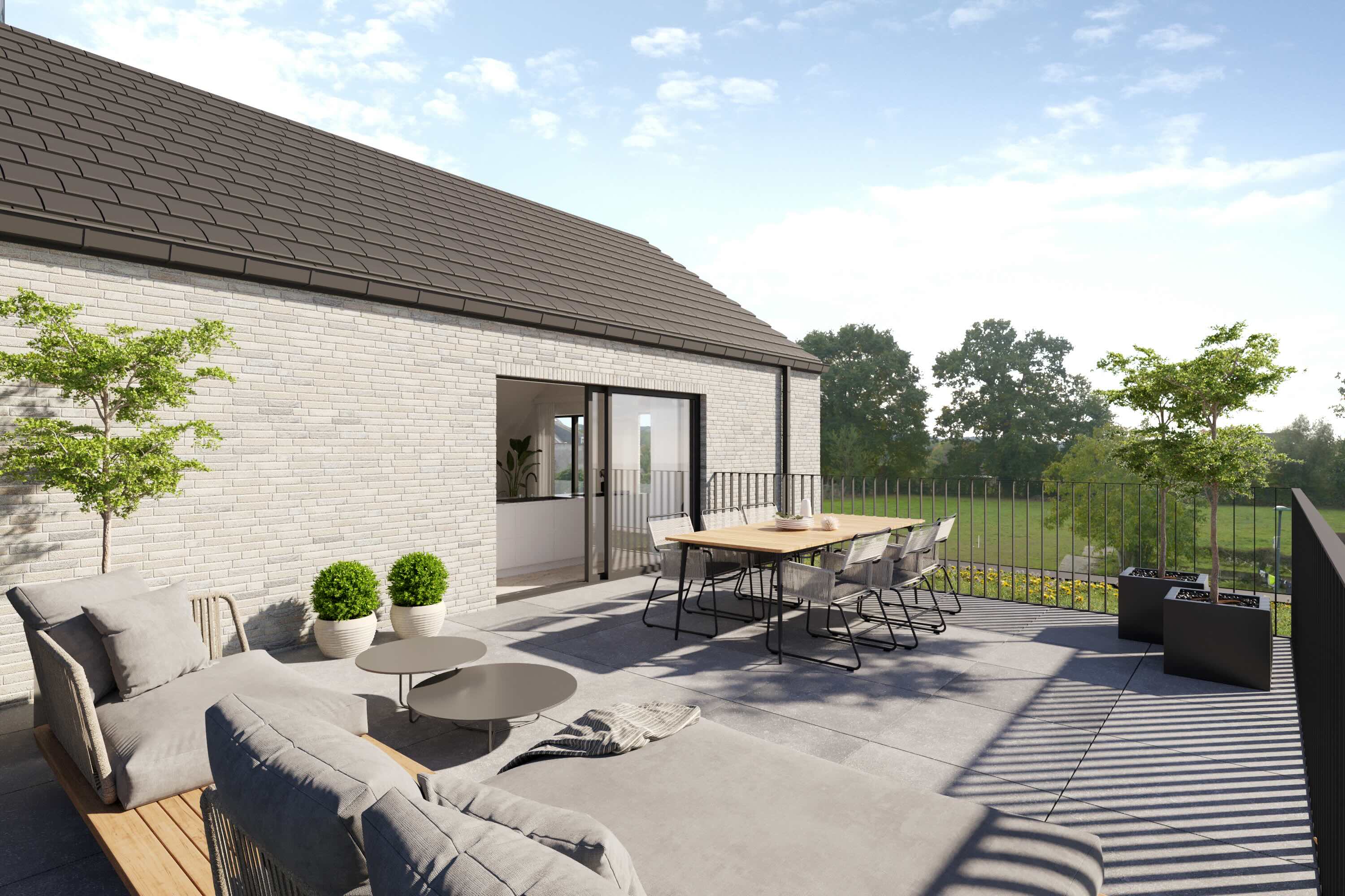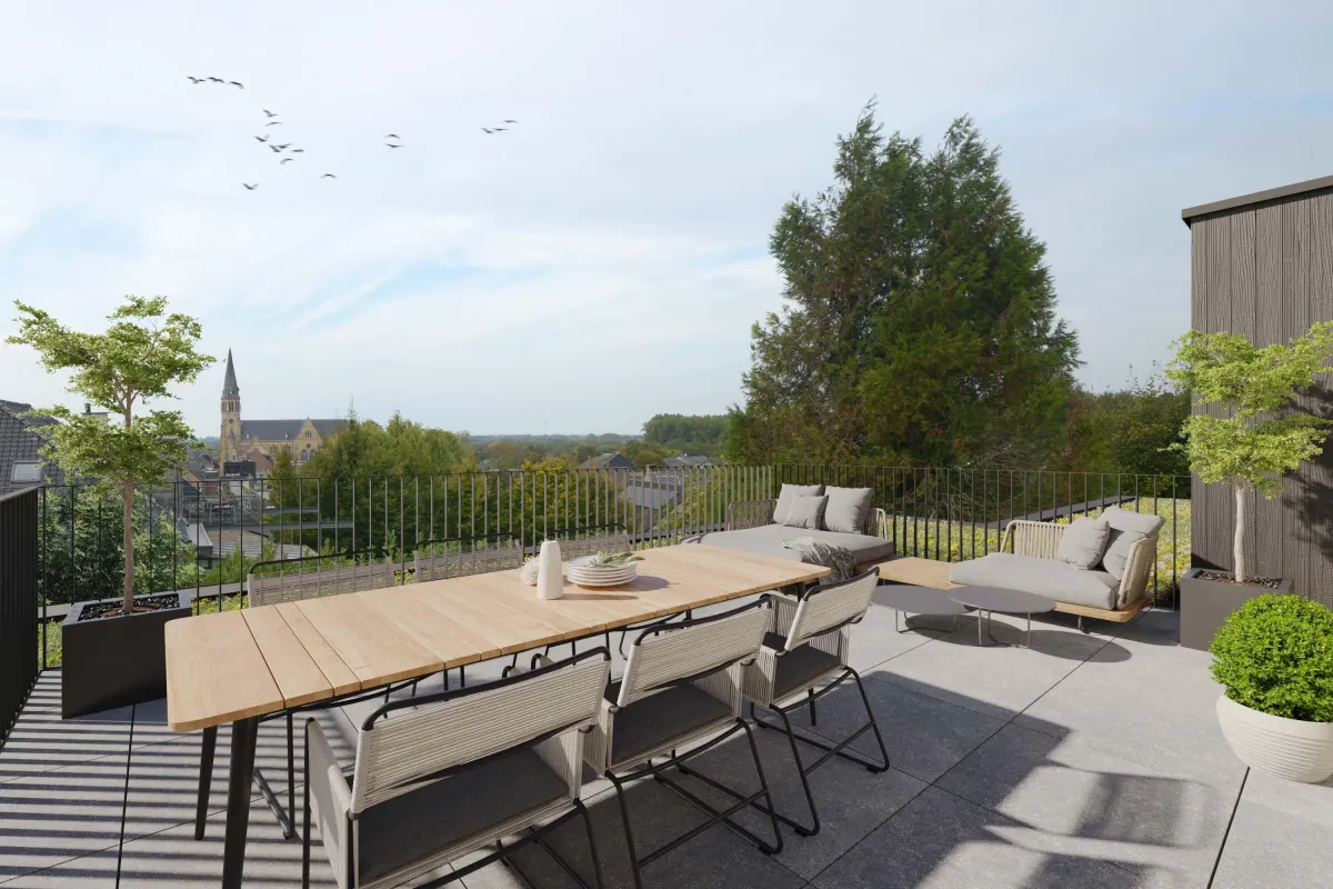 Elk appartement beschikt over een ruim privéterras. Dankzij de slimme inplanting geniet je binnen van maximale privacy en buiten van een directe connectie met het groen of de omgeving. Daarnaast zijn er private bergingen en is er voldoende parkeerruimte aanwezig.