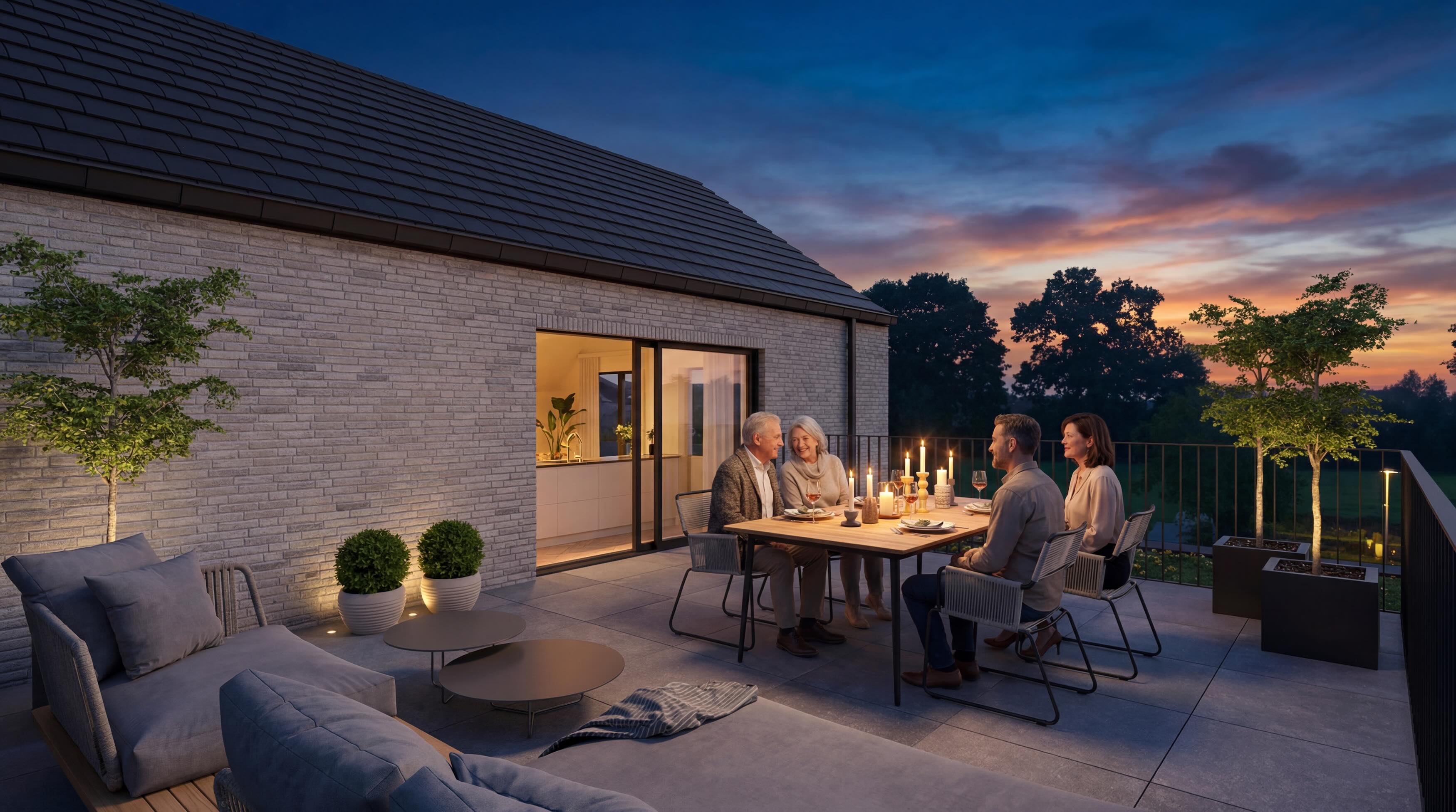 Elke woning is standaard uitgerust met grote ramen, kwaliteitsvolle materialen en een energiezuinige
